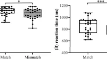 Время реакции и частота ошибок показаны на Рис. 1. Мы провели отдельные ANOVA с повторными измерениями по времени реакции и частоте ошибок. Хотя испытания с транслитерацией дали более быстрое время реакции (средняя разница = 26 мс) по сравнению с испытаниями с переводом, эта разница не была статистически значимой (F(1, 17) = 3.46, p = 0.08, ŋp2 = 0.16). Аналогично, мы не наблюдали значимого основного эффекта целевого языка (F(1, 17) = 0.26, p = 0.61, ŋp2 = 0.01), хотя участники были на 9 мс быстрее при обработке английских целей по сравнению с малаяламскими целями. И взаимодействие между конгруэнтностью прайма и целевым языком не было значимым (F(1, 17) = 0.2, p = 0.66, ŋp2 = 0.01).