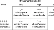 Как было сказано ранее, согласно моделям BIA, визуальная обработка слов начинается с ранней идентификации буквенных признаков 8,9,10. В свете этих моделей, те кросс-скриптовые исследования, которые предполагали активацию фонетики нецелевого языка при обработке слов на целевом языке, указывают на то, что орфография первого языка активируется целевым языком. Однако другие исследования утверждают, что кросс-скриптовые праймы удобно ограничивают визуальную обработку слов соответствующим (целевым) языком. Главный вопрос согласно моделям BIA здесь заключается в том, как признаки букв целевого языка, которые не имеют никакой визуальной схожести с буквами нецелевого языка, активируют последний. Один из способов изучить этот вопрос — использовать кросс-скриптовые когнатные переводы (например, заимствованные слова: далее транслитерация) и кросс-скриптовые не-когнатные переводы (далее перевод) праймы во время визуальной обработки слов. Транслитерации фонетически схожи, но орфографически различны друг с другом (P+O–). Заимствованные слова из одного языка в другой (которые не имеют уникального перевода в последнем языке) подпадают под эти условия. Такие слова пишутся с использованием орфографии принимающего языка, однако произносятся подобно языку-источнику. Переводы, с другой стороны, не являются ни фонетически, ни орфографически схожими (P–O–). То есть, такие слова имеют уникальную форму слова в каждом языке. Оба типа: транслитерации и переводы, разделяют одинаковую семантику (S+) между языками.