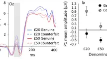 В эксперименте 1 участники оценивали общее количество монет на экране. Длительность стимула составляла 500 мс, а количество монет варьировалось от 8 до 32. В эксперименте 2 участники оценивали денежную стоимость монет при тех же условиях.